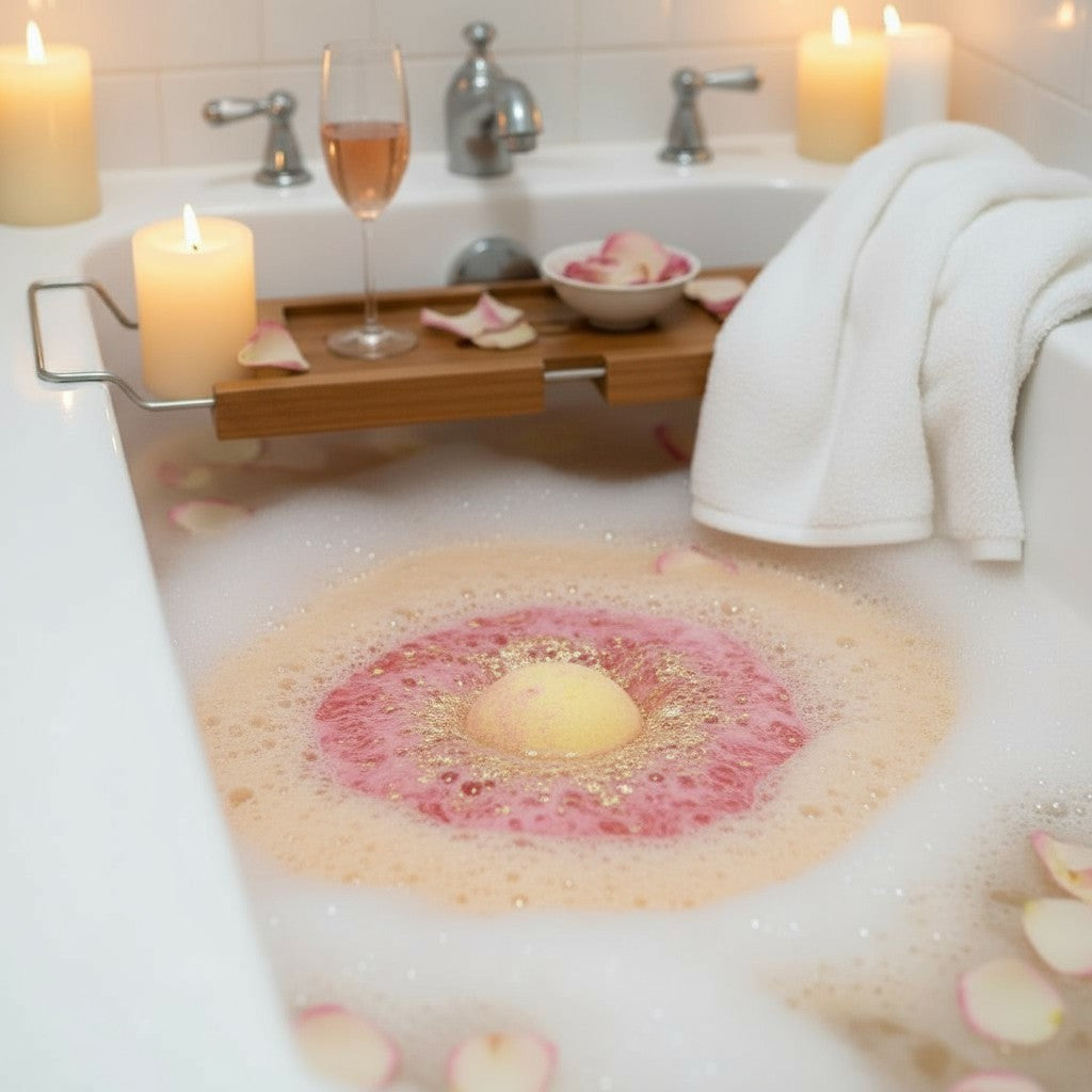 Allow the bath bomb to fully dissolve in your bath water without holding it.